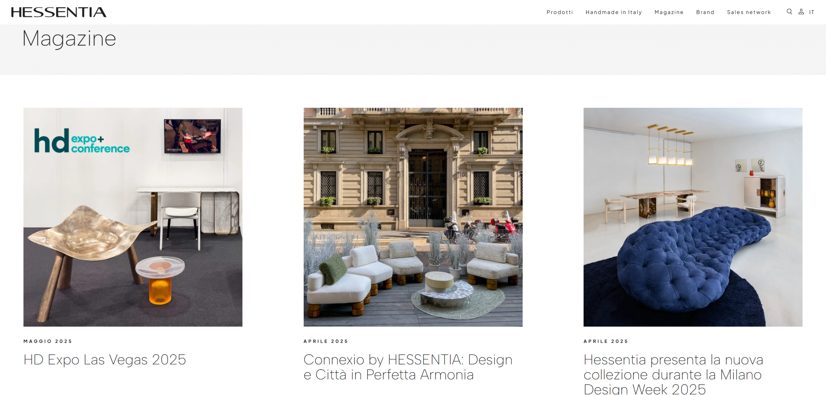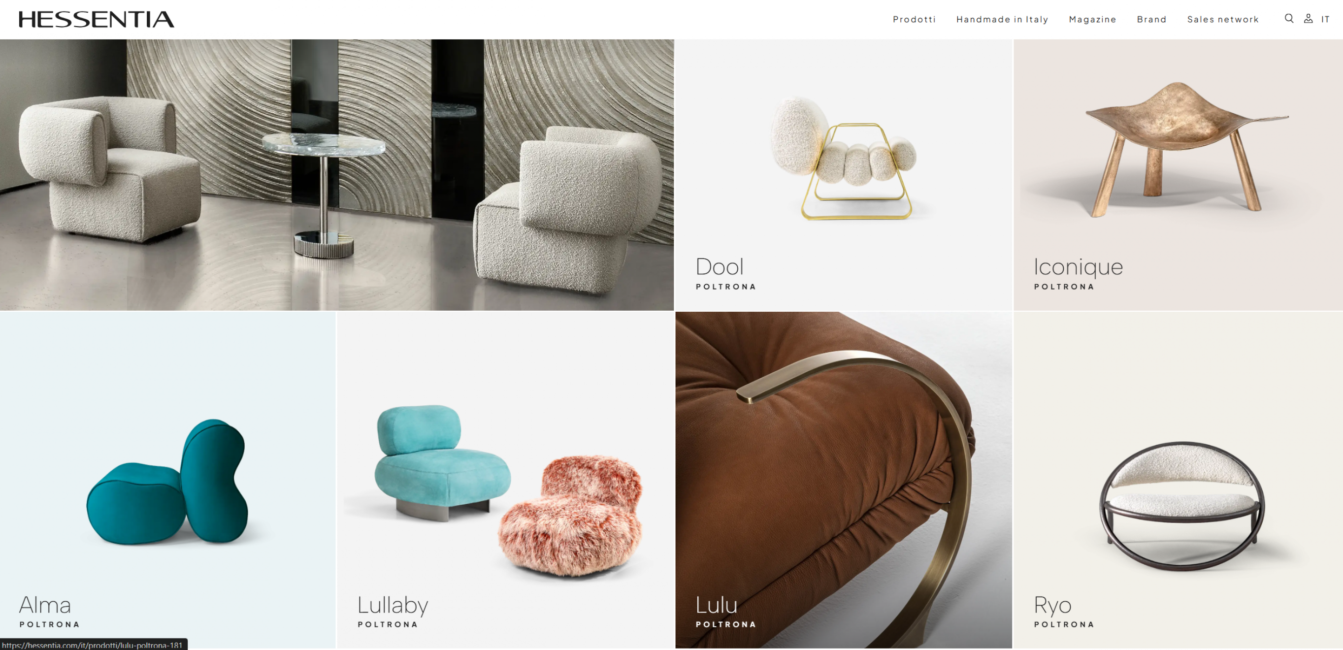 Il design del sito è pensato per mettere in evidenza la qualità dei prodotti Hessentia: divani, poltrone, tavoli, letti e complementi d’arredo sono presentati con immagini di forte impatto visivo e testi ottimizzati per il posizionamento sui motori di ricerca. La struttura semplice e funzionale accompagna l’utente nella scoperta delle collezioni, sottolineando la combinazione tra artigianalità italiana e design contemporaneo che caratterizza il brand.